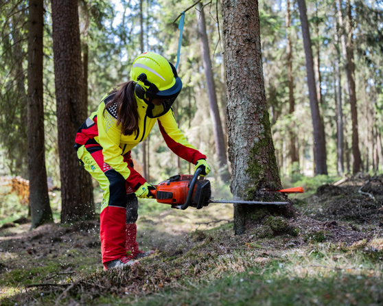 Att bära hjälm i skogen är inte bara en säkerhetsåtgärd – det är ett arbetsredskap i sig.